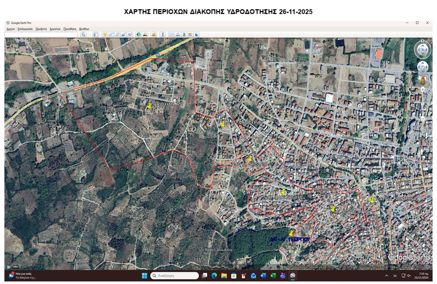 Διακοπή υδροδότησης στην πόλη της Λιβαδειάς την Τετάρτη 26- 11- 2025