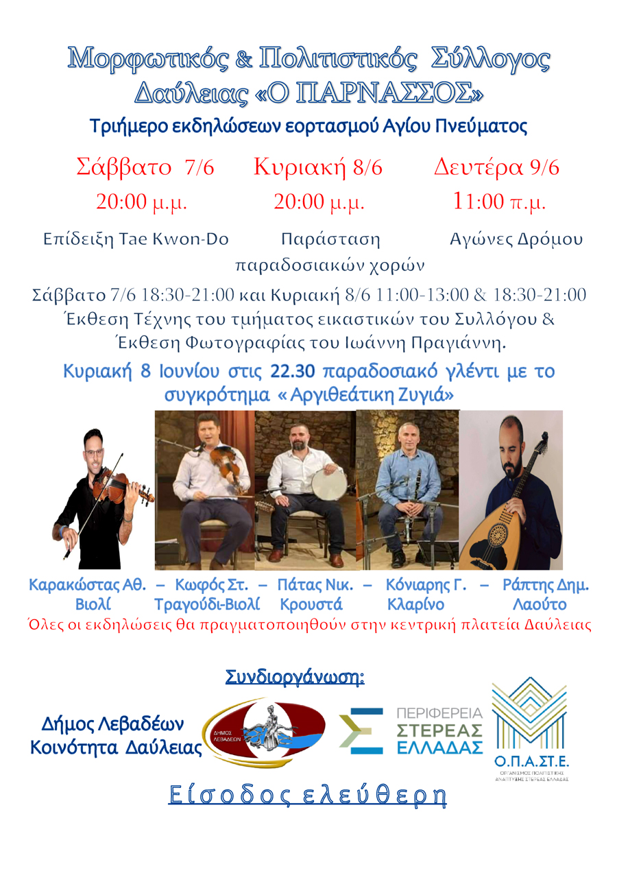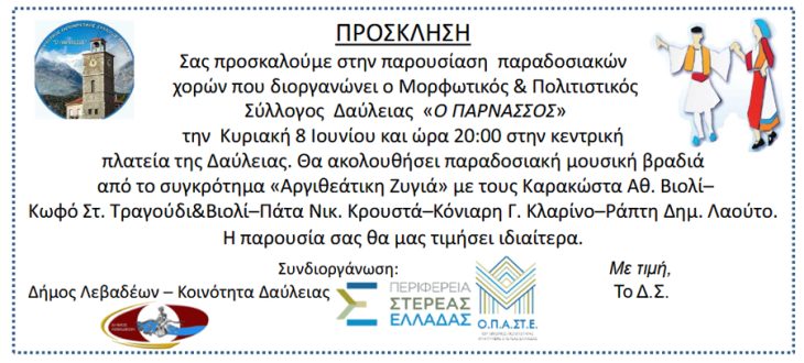 Μορφωτικός και παραδοσιακός σύλλογος Δαύλειας “Ο ΠΑΡΝΑΣΣΟΣ”: Παραδοσιακή χορευτική και μουσική βραδιά