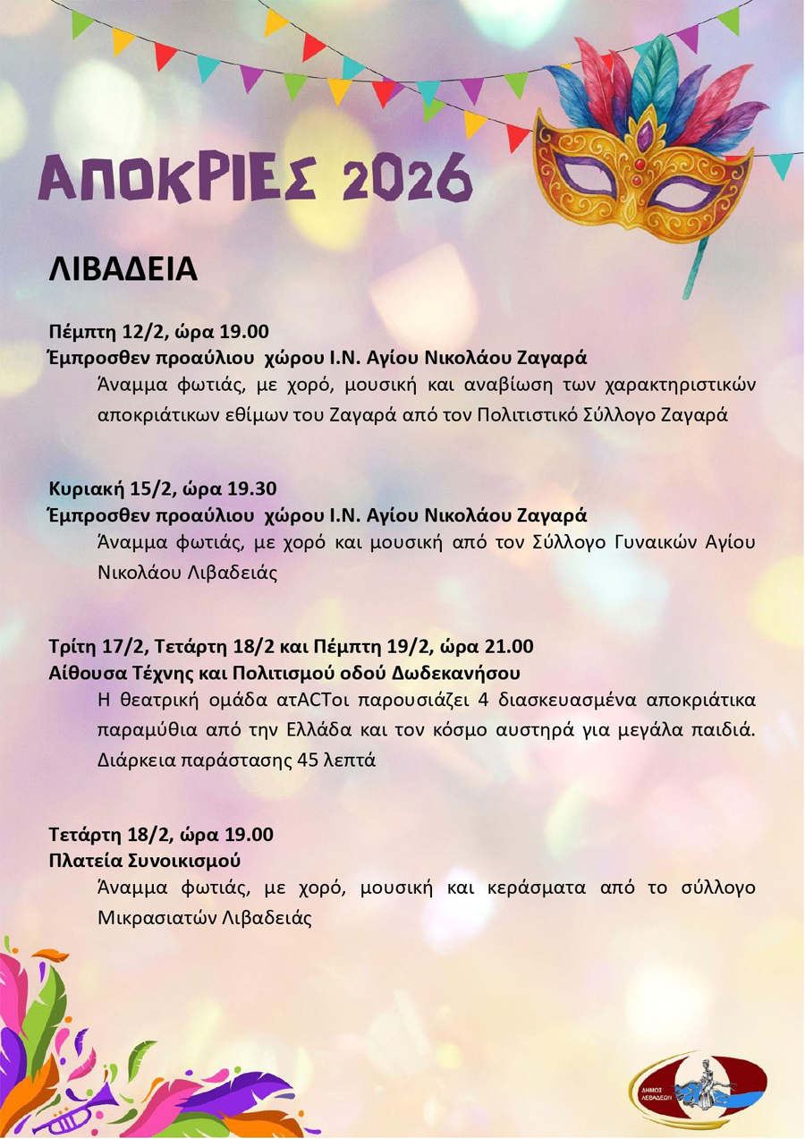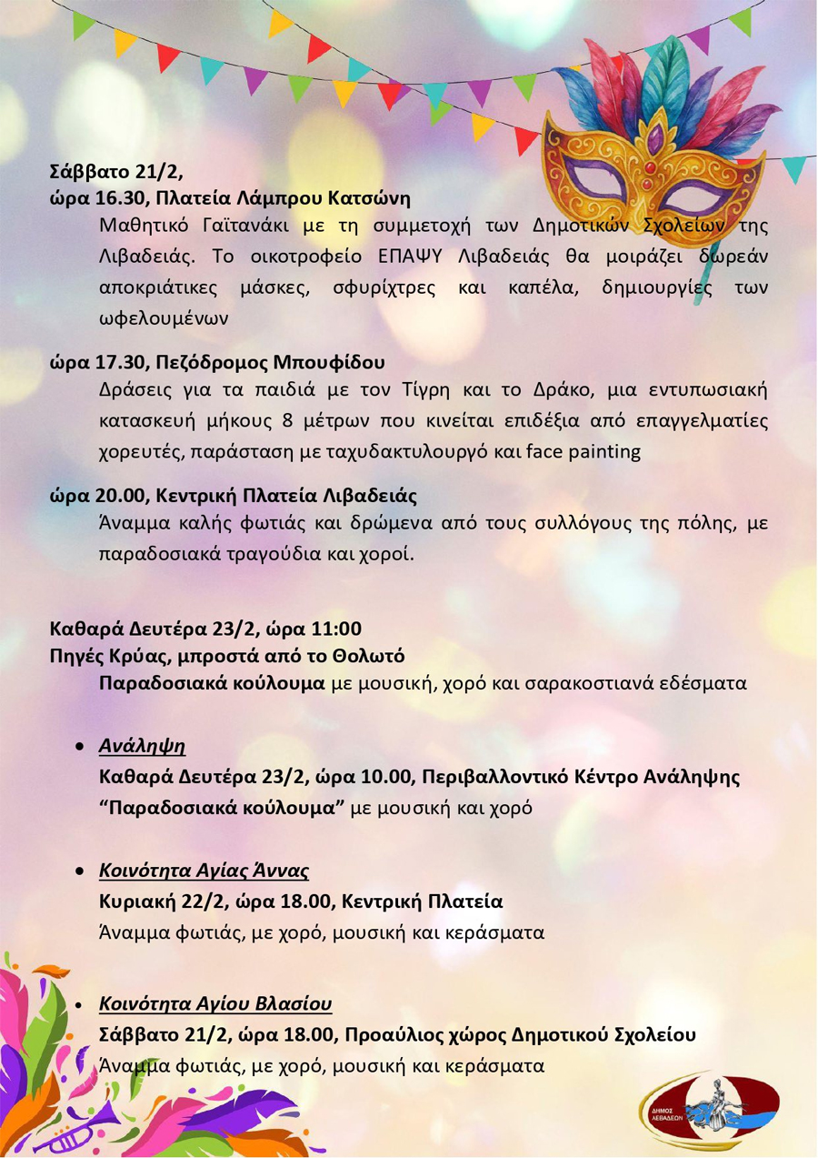 Πρόγραμμα των αποκριάτικων εκδηλώσεων