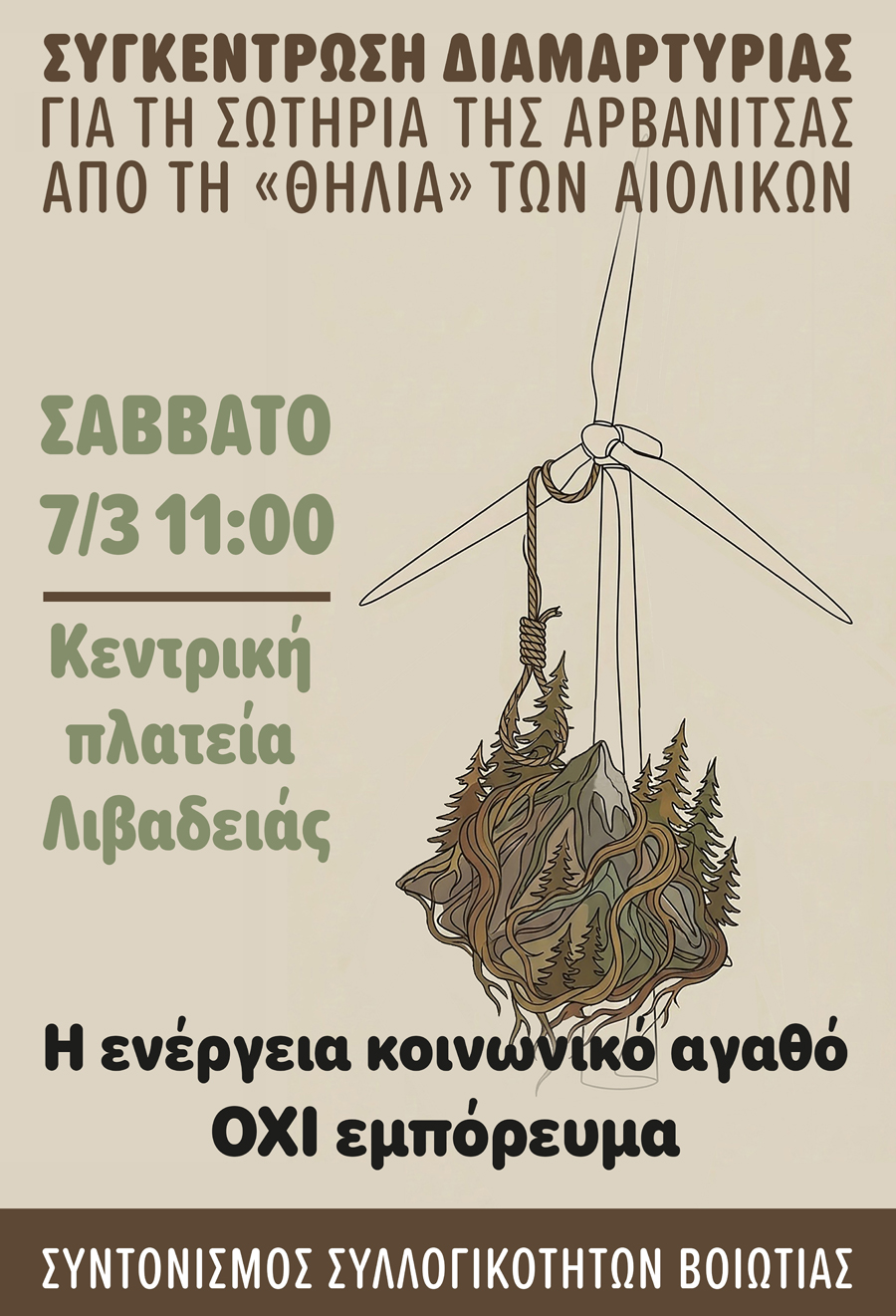Συγκέντρωση διαμαρτυρίας για τη δημιουργία αιολικών πάρκων στον Ελικώνα