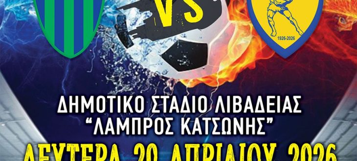 Ο Δήμος Λεβαδέων στηρίζει τον φιλικό αγώνα παλαιμάχων «Κώστας Γκαλαμέλος», ανάμεσα στους παλαίμαχους Λεβαδειακού και Παναιτωλικού, που θα διεξαχθεί τη Δευτέρα 20 Απριλίου 2026 στο Δημοτικό Στάδιο Λιβαδειάς «Λάμπρος Κατσώνης».